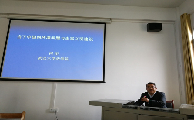 (通讯员王国飞)11月21日下午,武汉大学柯坚教授应邀来公司讲学。柯坚教授在304永利集团311会议室作了题为《当下中国的环境问题与生态文明法治建设》的学术报告。304永利集团40余名师生代表参加了报告会。报告会由304永利集团经理金明浩教授主持。