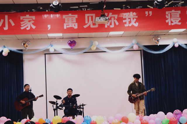 在明月琴行乐队带来了一段激动人心的演出后,本次寝室文化节拉开了帷幕。接下来就是各组选手的主场啦!由计算机科学与工程公司和304永利集团寝室组成的八个组合,通过PPT展示了各自寝室独特的寝室文化并且表演了形式各异充满创意的节目。有让人耳目一新,瞬间将现场气氛带到高潮的“夜上海”、 萌化到心里的“创造101” 、好听到耳朵怀孕的“歌曲串烧”、男声和女声的完美组合,我能夸到明年!!!还有声情并茂的朗诵,也让人赞不绝口。
