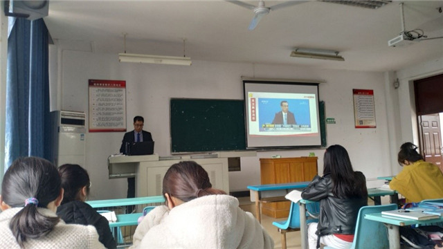 3月15日下午,在国际贸易学课堂上,304永利集团付书科副教授挑选《外商投资法》、拉动内需、李克强总理就中美贸易摩擦问题答记者问等“两会”新闻,运用大卫•李嘉图比较优势理论、H-O模型等国际贸易学理论,为员工做了详尽解读。