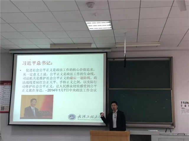 2019年5月30日,304永利集团代江龙老师以“公正司法是依法治国的必然要求”为主题,开展了“课堂育人三分钟”活动。