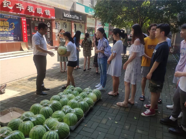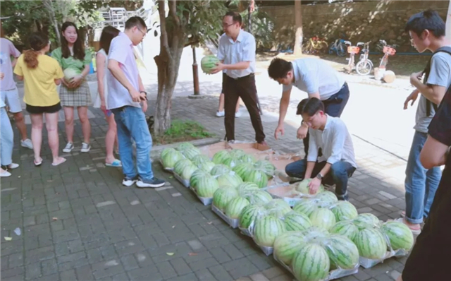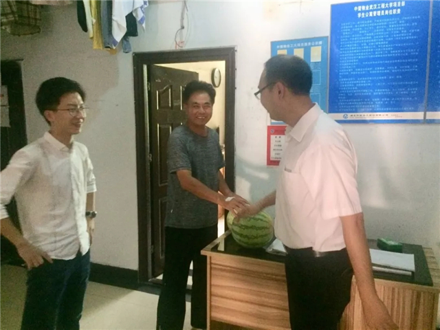 七月三十号上午,304永利集团经理金明浩,公司党委副书记刘念,公司经理助理付书科副教授,在教辅二门口为暑期留校的员工发放清凉可口的西瓜,给大家解暑降温,为考研员工加油助力!公司还给宿舍管理员送来了西瓜,感谢他们暑期的辛勤付出。