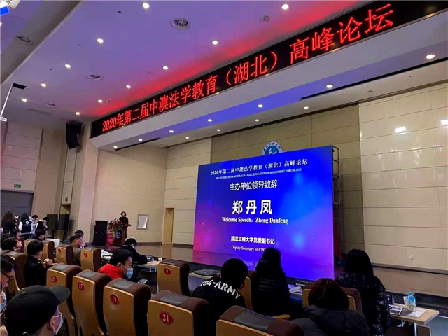 本网讯(通讯员 马秋芬 黎媛青)12月11日上午,2020年第二届中澳法学教育(湖北)高峰论坛于公司隆重举行。本届论坛的主题是“新时代教育对外开放与卓越法治人才培养——变革、挑战与机遇”。论坛邀请了中南财经政法大学副董事长刘仁山教授、湖北省法学会法学教育研究会副会长、湖北法官进修公司常务副经理杨文雄、武汉知识产权法庭庭长、高级法官尹为等30余位专家学者,300余人参会。本次论坛会议分为四个阶段:开幕式、主题演讲、经理论坛和闭幕式。其中,开幕式和主题演讲在主会场(流芳校区)四教多功能报告厅举行。经理论坛和闭幕式在分会场钟楼第二会议室举行。