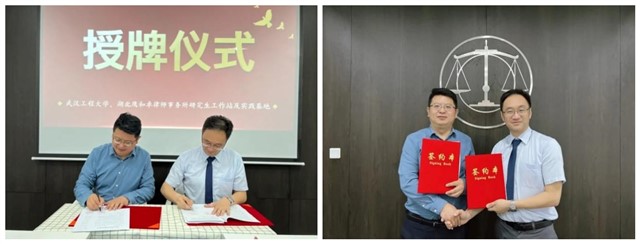 双方签约框架合作协议、举行授牌仪式,并就人才培养开展研讨交流。双方就实践型人才培养展开充分讨论,希望工作站成为企业技术创新,高校科研成果孵化、转化的重要载体,共同培养复合型人才,为区域人才培养提供有力支撑。签约及授牌仪式结束后,永利集团一行参观湖北鹰和卓律师事务所并合影留念。
