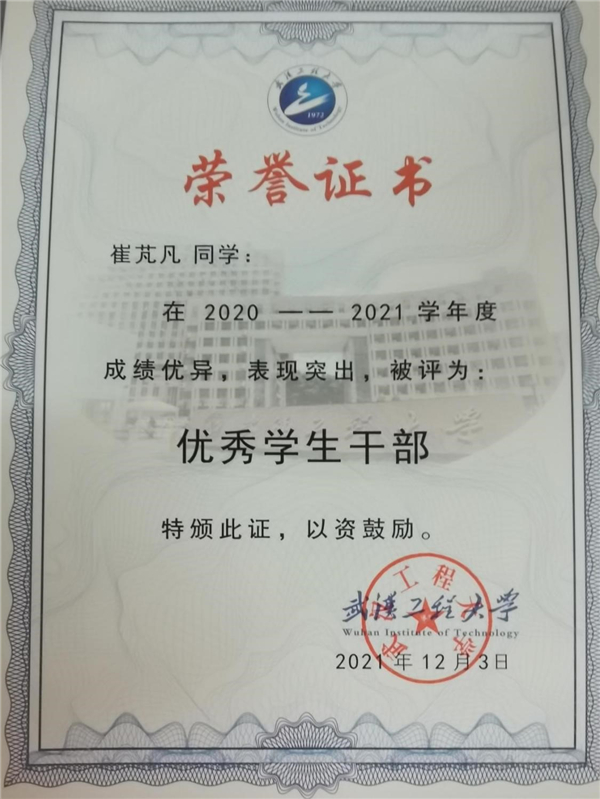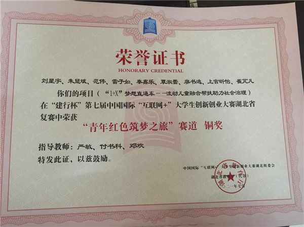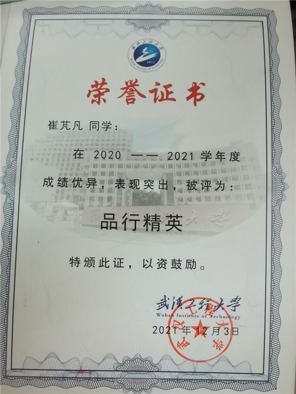 从步入大学起,她便对自己定下了高标准、严要求,并脚踏实地完成制定的每一个目标,她在学业上稳扎稳打,专业成绩名列前茅。2021年6月,作为永利集团代表参加华中地区“法学青年说”活动。她积极参加各类学科竞赛,在第七届“互联网+”大赛湖北省复赛中荣获铜奖,荣获湖北省第十二届“挑战杯”老员工创业计划竞赛铜奖。斩获永利集团“十佳共青团干”“三好员工”“优秀共青团员”“工大精英奖学金”“综合甲等奖学金”“品行精英”等荣誉称号。