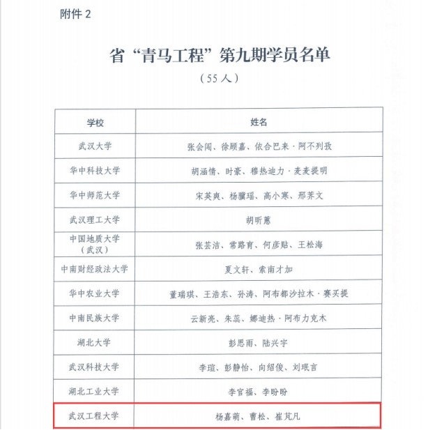 (通讯员 章文杰)近日,共青团湖北省委公布了湖北省第九期青年马克思主义者培养工程名单,公司2020级法学02班崔芃凡同学成功入选。