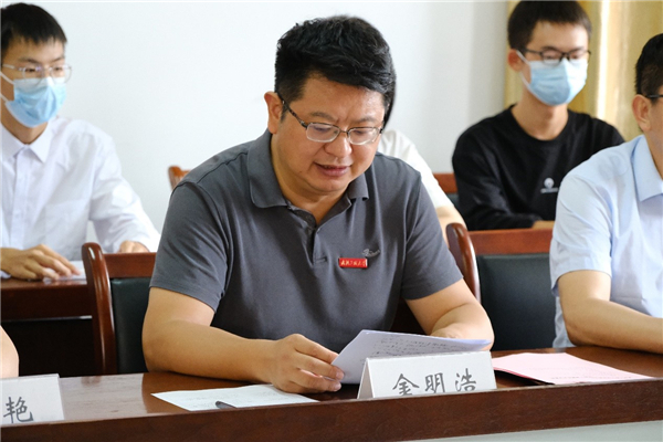 典礼在雄壮的国歌声中拉开序幕。金明浩代表公司对2022级新生的到来表示热烈欢迎,并对公司办学历程、发展现状、建设目标以及近年来取得的成果进行了详细介绍。在新的起点,他对全体新生提出三点希望:一是要培养一种习惯,好学善思;二是要坚持两种精神,勤奋进取,持之以恒;三是要拥有三大收获,收获感动、收获力量、收获成长。他鼓励全体新生共同执起手中之“笔”,用心描绘,用情书写,绘出自己的精彩人生,写出自己的精彩故事!