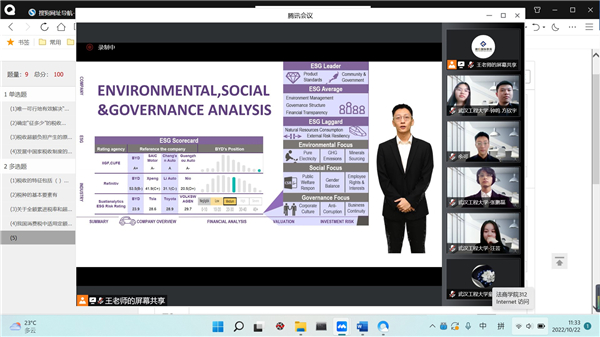 (通讯员 童星、余可)10月22日9:00~16:00,第五届融仕国际杯金融投资分析大赛决赛采取线上网络视频的形式举行,来自湖北省、四川省、广东省、湖南省、浙江省的九所高校团队开展了激烈的角逐。公司童星老师担任指导老师,20级CFA专业余可、张鹏磊、钟鸣、方欣宇和汪芸五位同学组成团队,参加决赛。经过七个小时异常激烈的比拼,公司团队勇夺冠军,张鹏磊同学荣获最佳个人奖。