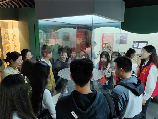 实践团一行人参观了中南民族大学民族学博物馆,在讲解员引导下领略各民族的民俗文化、多姿多彩的服饰、文史档案、生活用具、居住环境等方面的特色,了解各民族发展、融合,共同融入中华民族大家庭的历程。同学们在展品前驻足、拍照,认真阅读介绍材料,在互动中体验各民族的特色文化。