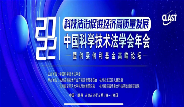 (通讯员 马秋芬)2023年3月18日至19日,“中国科学技术法学会2022年年会暨何梁何利基金高峰论坛”在杭州隆重举行。会议由中国科学技术法学会主办,杭州高新技术产业开发区管理委员会、杭州市滨江区人民政府、北京航空航天大学杭州创新研究院、杭州极弱磁场重大科技基础设施研究院联合承办。