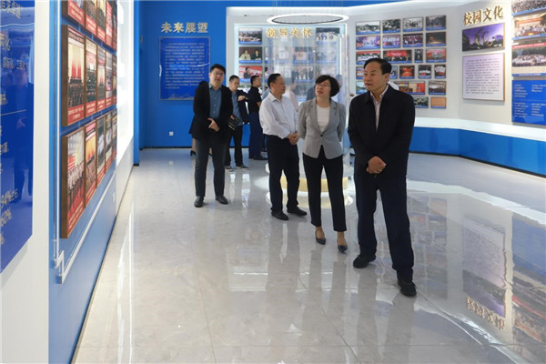 会前,郑丹凤陪同黄炎勋、陈郧山等六位员工参观了校史馆。