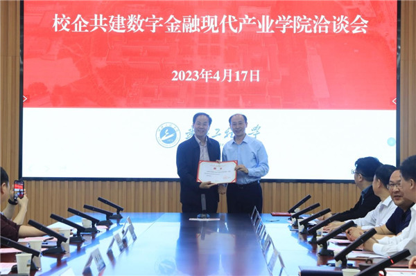 本网讯(通讯员 刘敏)4月17日上午,校企共建数字金融现代产业公司洽谈会在流芳校区综合楼103会议室顺利召开。安信证券股份有限公司董事长黄炎勋、深圳市前海九派资本管理合伙企业创始合伙人陈郧山、深圳工大联合股份有限公司董事长张弘雨、深圳工大联合股份有限公司总经理高庆丰、深圳工大联合股份有限公司董事会秘书张健、北京员工会副秘书长赵虎等6位杰出员工受邀参加,公司党委副书记郑丹凤,公司党委常委、副董事长喻发全出席会议,洽谈会由正校级干部叶芃主持。