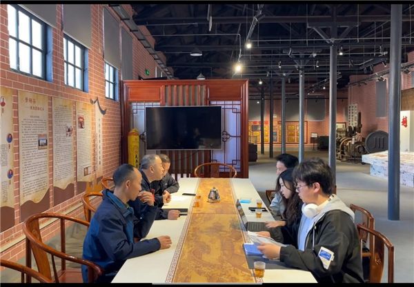 指导老师马秋芬带领实践团志愿者与赵李桥茶厂紧压茶研究所所长陈军海一行共同探讨“涛声茗响”暑期社会实践新模式与社会实践基地的孕育发展,旨在以校企合作的新形式,将高等公司学科优势与乡村振兴伟大使命相结合,利用地理标志的运用保护与品牌赋能为中华老字号企业寻找新时代新机遇,将赤壁青砖茶的招牌打响,走向全国、行销世界。