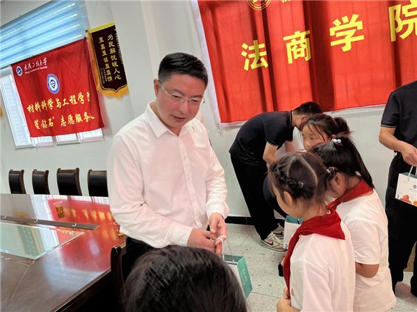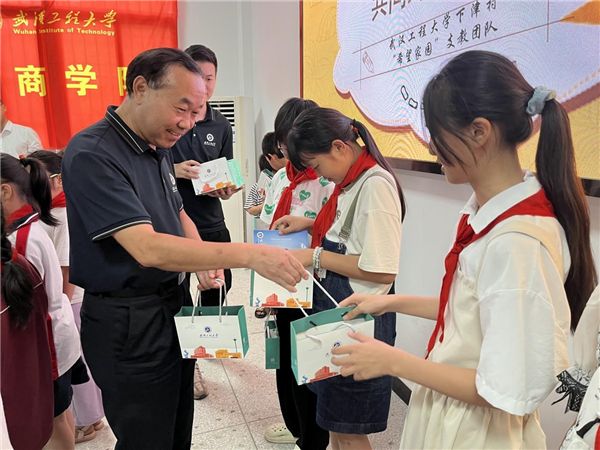 林桢栋走进“希望家园”公益课堂,认真观摩志愿者给小朋友们教授的“玩转材料”手工创意课。他与李志旭一行给小朋友送上公司精心准备的小礼品,一份武工大明信片、一只签字笔、一盒彩笔、一个文具袋、一串卡通钥匙扣,祝愿小朋友们好好学习,天天向上。小朋友们收到礼物开心不已。