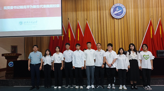 典礼上,公司党委书记杨克平为10名新生代表佩戴校徽,希望同学们尽快完成角色转换,适应工大人、法商人的新身份。
