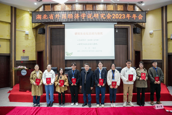 本网讯(通讯员 田嘉莉 马鑫宇)11月17-18日,由湖北省外国经济学说研究会主办、湖北文理公司承办的湖北省外国经济学说研究会2023年年会在襄阳举行,本次会议分为专家论坛、研究生论坛两个板块。公司19名师生应邀参加本次会议,教师付书科做“坚持生态优先 绿色发展 以科技创新引领长江经济带高质量发展”的主题报告,研究生付思雨和张自升分别做“Innovating from the Ground Up: The Impact of Key Technological Advancements on Collaborative Carbon and Haze Governance”“如何提高区域性创新型县域的建设水平?一个fsQCA的分析框架”的报告。