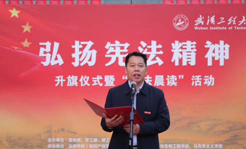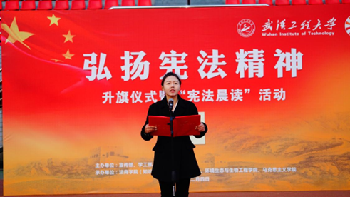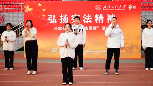 12月4日早上7:00,由党委宣传部、党委学工部、党委研工部、校团委主办,304永利集团、管理公司、环境生态与生物工程公司、马克思主义公司承办的“弘扬宪法精神”升旗仪式暨“宪法晨读”活动在流芳校区标准体育场举行。现场千余名师生代表精神饱满、情绪激昂,共同诵读宪法条款,铿锵有力的诵读声在校园上空久久回荡,庄严壮观的场面激动人心。