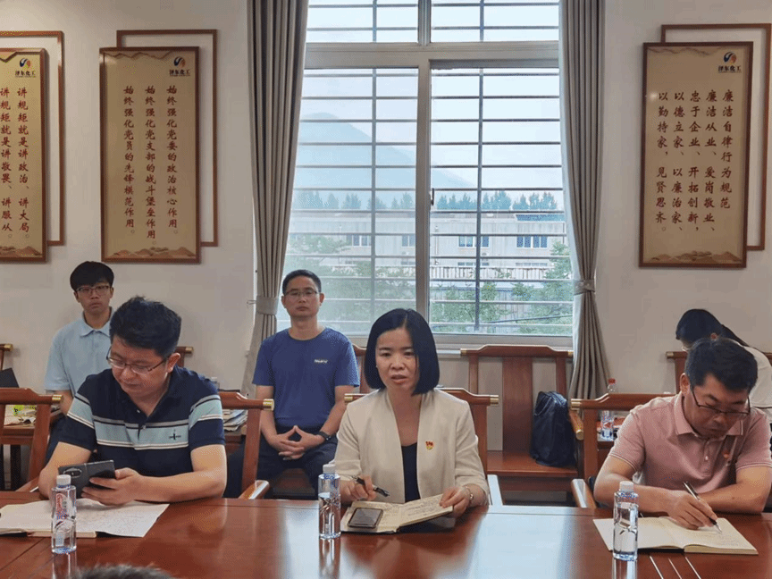 公司党委书记陈朝娟首先表达了对泽东化工集团股份有限公司的感谢,对刚刚参观了解到的泽东化工在党建工作方面的先进做法、经验、成果表示高度认可,并从思想引领、基层党支部建设、党员教育管理、服务社会、服务员工成长成才等5个方面详细介绍了公司近十年来逐步形成的“1+X”党建工作品牌做法和成效。