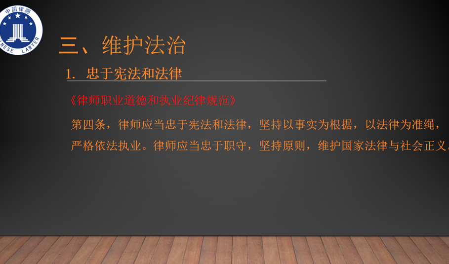 王辉律师从“律师职业伦理的基本要求、规范委托关系、避免利益冲突、依法合理收费、保守职业秘密、规范业务推广、处理职业关系”七个方面深入浅出地讲解了律师执业过程中应该坚守的职业底线和职业规范。通过“浙江张氏叔侄奸杀案”“张扣扣案”以及自媒体时代律师业务推广规范等案例的分析,介绍了律师在执业过程中面临的伦理挑战以及应对的方法。