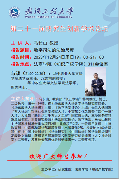 主讲:马长山教授时间:2023年12月24日周日19:00-21:00地点:304永利集团311会议室