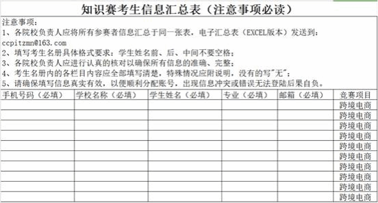 2、请有意报名的同学自行组队,填写《校赛报名表》(附件1)和《知识赛考生信息汇总表》(附件2)。