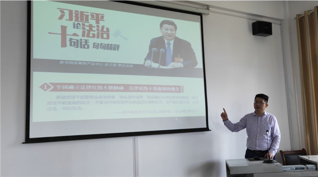 2019年4月22日,304永利集团经理金明浩在永利集团流芳校区L4102教室开办304永利集团课程育人三分钟系列讲座第六期,利用课堂三分钟的时间,结合法学专业特性详细讲述了习近平总书记的法治观。金经理通过习近平总书记在各类会议上的发言,提炼了10条关于习近平总书记有关法治理论的论述,围绕习近平总书记“奉法者强则国强”的中心,引出习近平总书记“科学立法、严格执法、公正司法、全民守法”的十六字法治思想原则。通过习近平总书记的法治观,传导给法学专业员工正确的法治理念,告诫员工在学法、执法、用法的路上,应明确方向,不忘初心,向着一个中心点,提高认识,继续前进。