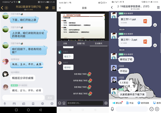 金艳艳:在这堂“思政大课”中,四位老师结合书本内容向我们解读了党中央关于疫情的决策部署,分析了社会主义显著优势,讲述了战“疫”一线的感人故事,深入浅出,这令我备受鼓舞和激励。疫情当头,我们一定要紧跟党的领导,坚定必胜信念,携手共进,因为我们相信“风雨压不垮,苦难中开花”。