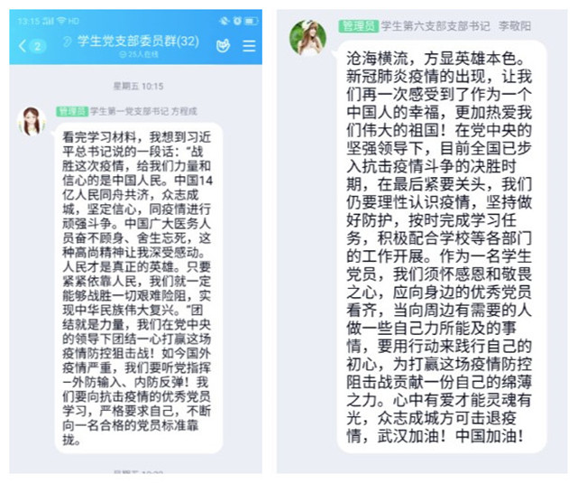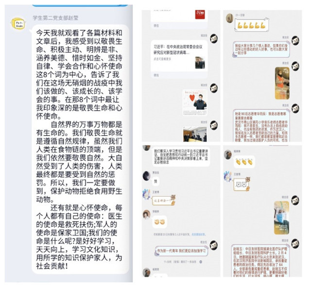 2019级、2016级班主任号召同学们发起“疫情期间我们在行动”倡议书,以“抗击疫情 从我做起”为主题,从科普新冠肺炎、国内外疫情局势、各地疫情举措、疫情防护措施、战疫故事等五个部分与同学们进行互动交流。