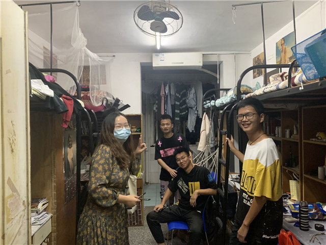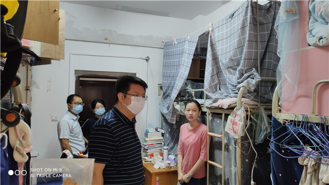 本网讯(通讯员 刘敏)8月31日晚6点,员工返校首日,学工部部长王涛、公司党委书记李志旭、经理金明浩、公司党委副书记严敏、副经理黄艳、经理助理副书科携辅导员、班主任前往员工宿舍看望慰问返校员工。