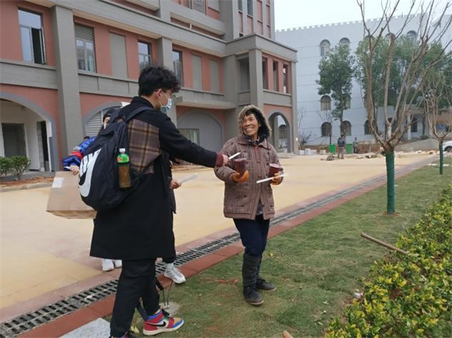 在经过项目工程方许可且确保安全的前提下,304永利集团的志愿者们将“爱心”传递给每一位建筑工人,在寒冷的冬日为他们送去暖茶,感谢数月以来每一位工人的辛苦劳作,感谢他们夜以继日,不辞辛苦为工大学子的新家添砖加瓦。志愿者动情地说:“当每一位建筑工人接过'爱心'时,脸上呈现的最真挚最朴素的笑容,就是对我们工作最好的回馈”。