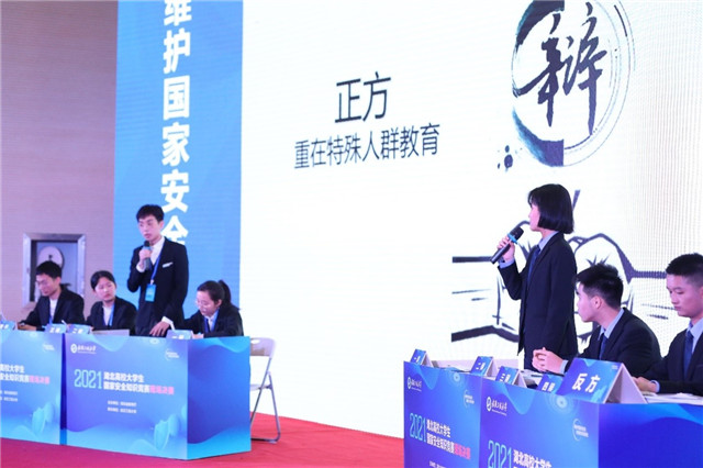 经过前两轮的焦灼比拼后,湖北警官公司、武汉轻工大学成功入围第三轮:“终极pk,决出最佳队伍”。经过现场抽签,两支队伍从“国家安全重在特殊人群教育还是全民教育”展开辩论。最终,经过专家评委及大众观摩团现场投票,湖北警官公司代表队拔得头筹。来自湖北大学法公司的郑全新教授作为评委代表进行现场点评,他指出,此次决赛内容的设置将理论与实践相结合,教育与技能相结合,在考察国家安全理论知识的同时将老员工国家安全教育的实践应用于现实场景之中,以期教育春风化雨、润物无声。