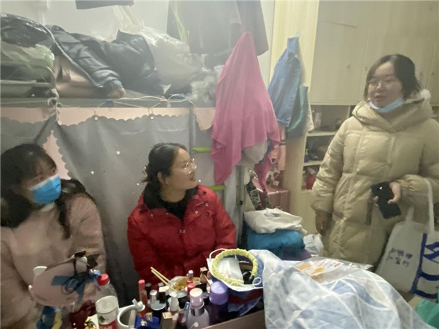 担心员工的考研和就业情况,严敏特地来到教辅2栋、7栋员工宿舍,与即将毕业的大四员工面对面沟通交流,仔细了解他们的复习备考情况和就业进展。当了解到少部分员工准备二次考研时,她认真为同学们分析了报考公司专业的相关信息和二次考研的风险,叮嘱员工要慎重选择。她鼓励毕业生们今后无论走上什么岗位,都要努力乘风破浪、扬帆远航,做新时代的奋斗者和追梦人。