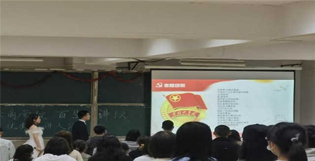 19级英法二班邹嘉讯的演讲触动人心、发人深省,通过几个党史小故事,使同学们更进一步地了解党的历史征途。“我们不曾亲历来时的路,但历史会与我们诉说;我们无法知晓未来,但历史会给我们指引。我们要循着这条来时路,高山仰止,景行行止,虽不能至,然心向往之,亦笃行之。”
