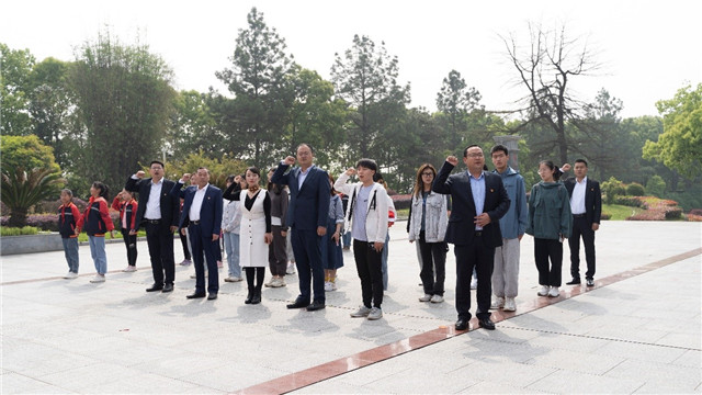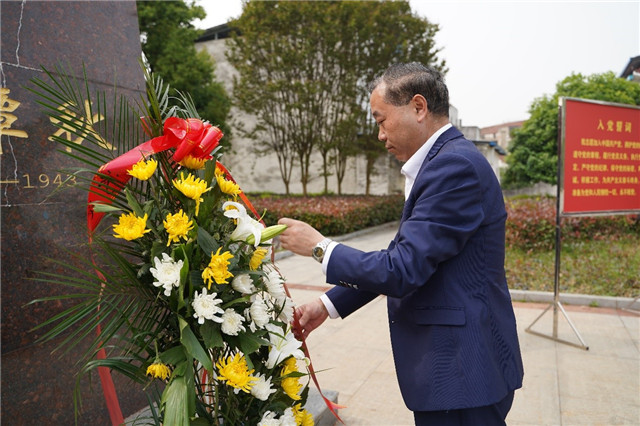 洽谈会前,李志旭一行在洪林陪同下来到铜像广场向陈潭秋烈士敬献花篮,学工部部长吕容涛领誓,重温入党誓词。