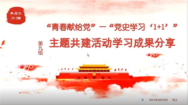 本网讯(通讯员 章文杰)4月23日—5月23日,304永利集团与中国石油大学(北京)石油工程公司共同开展“青春献给党”——党史学习‘1+1’”主题共建活动。通过线上组队,创建学习小组,红色资源和党史学习微课堂共享等形式,实施“学党史”“讲党情”“感党恩”“我为同学办实事”系列活动,构建党史学习新模式,助力青年学子强信念、传精神、抒理想。