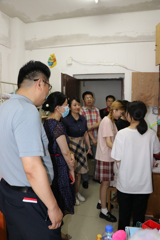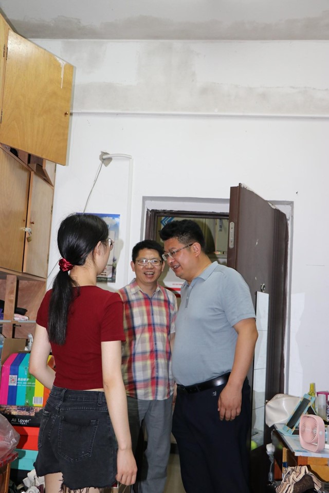 “行李收拾得怎么样了?毕业后准备去哪?”“还有没有什么困难?”在走访慰问过程中,每到一间宿舍,公司领导们都会亲切地与同学们交谈,或回忆往昔、或了解现状、或畅谈未来。老师们热切地关注着同学们毕业后的去向,为考研成功和找到好工作的同学们欣喜,为参加公招考试的同学们加油,给还在迷茫的同学出谋划策。对于公司领导们的到来,同学们很开心,大家都好似有说不完的话。