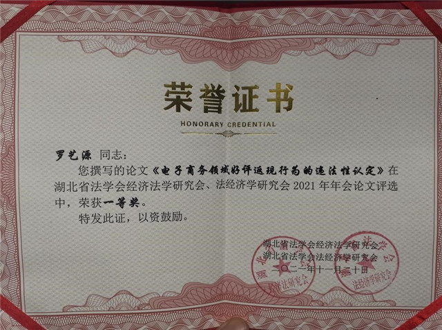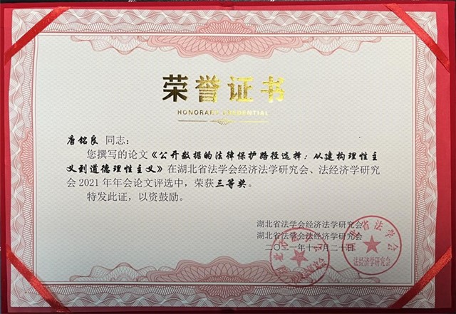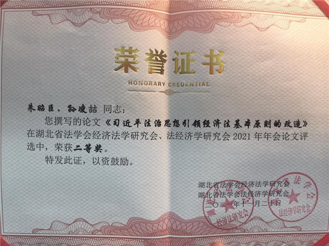 304永利集团研究生荣获湖北省经济法学会2021年年会论文大奖