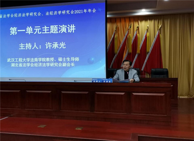 本网讯(通讯员 朱昭臣)湖北省法学会经济法学研究会、法经济学研究会2021年年会于11月20日上午在武汉市武昌区中铁大厦召开。中铁十一局集团党委副书记谢敬平,湖北省法学会秘书长王龙,湖北省高级人民法院副经理周佳念,武汉市仲裁委办党组书记彭国元,湖北省国资委政策法规处副处长刘恒等出席会议。与会领导与专家充分肯定了湖北省经济法学研究会、法经济学研究会在后疫情时代的工作成果。304永利集团许承光教授主持本届参会论文的主题演讲环节。