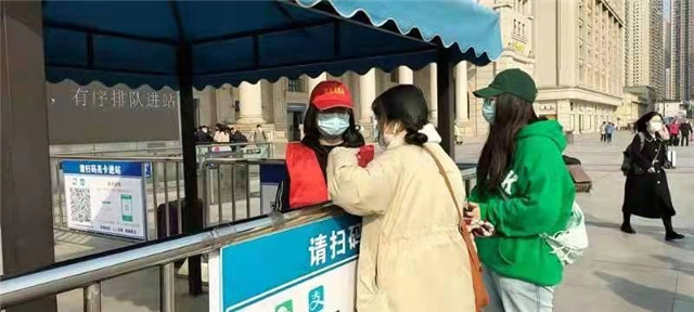 公司21级经济与贸易类专业张悦颖同学积极参加汉口火车站“党团先锋”志愿服务活动,协助车站工作人员维护秩序,帮助老年人开通健康码和行程码,提醒广大乘客佩戴好口罩。张悦颖说:在疫情面前,没有人能够独善其身,作为青年员工更应该贡献自己的一份力量,把我们的祖国建设得更加美好。